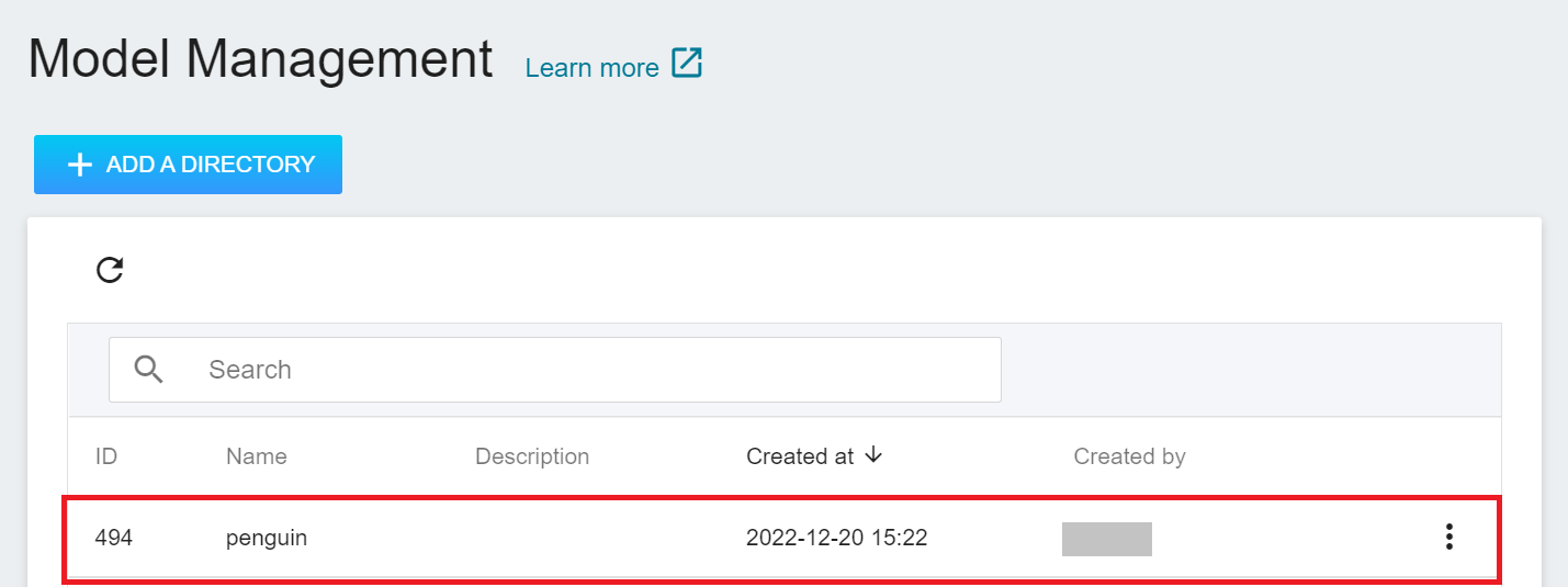 Then click **+CREATE** to add a bucket named **`penguin`** to store the dataset for training.