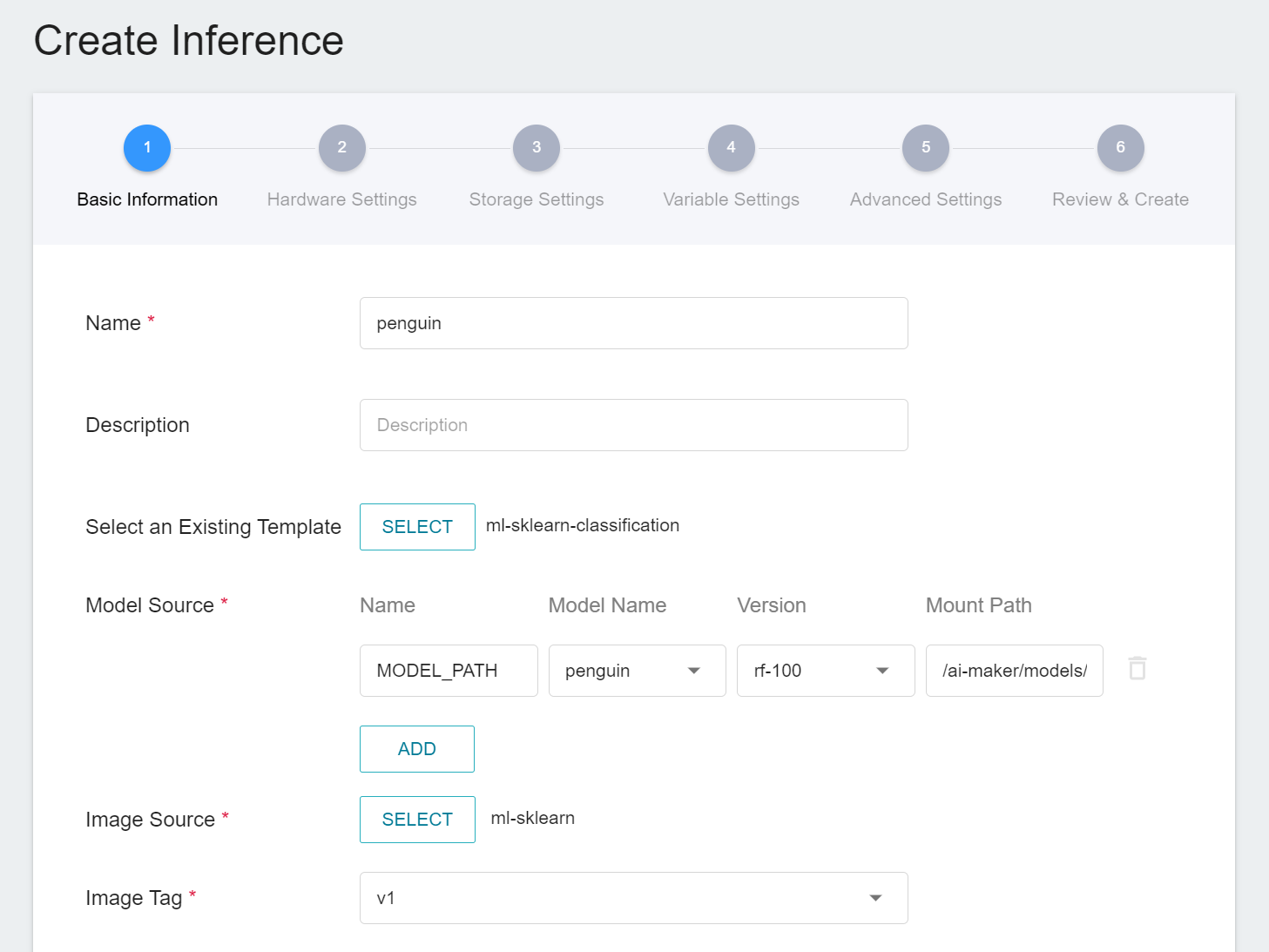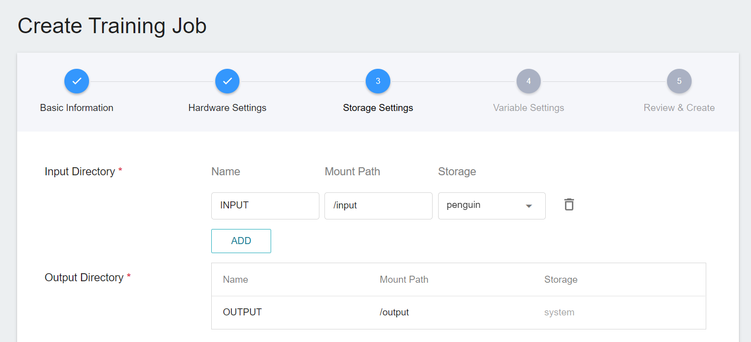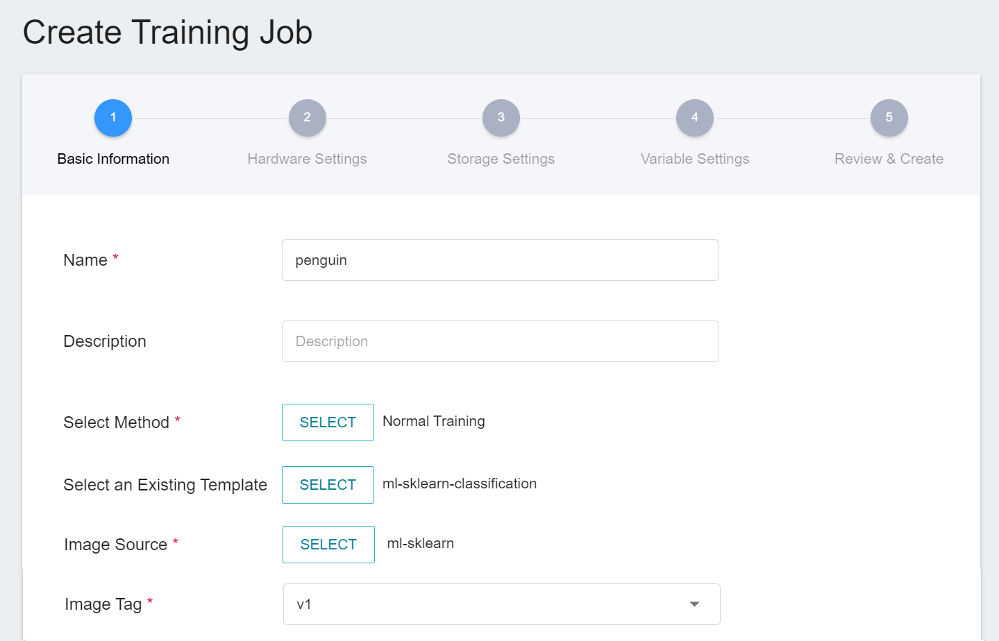 There are five steps in creating a training job. For detailed instructions, please refer to the [**AI Maker User Manual**](/s/ai-maker-en).